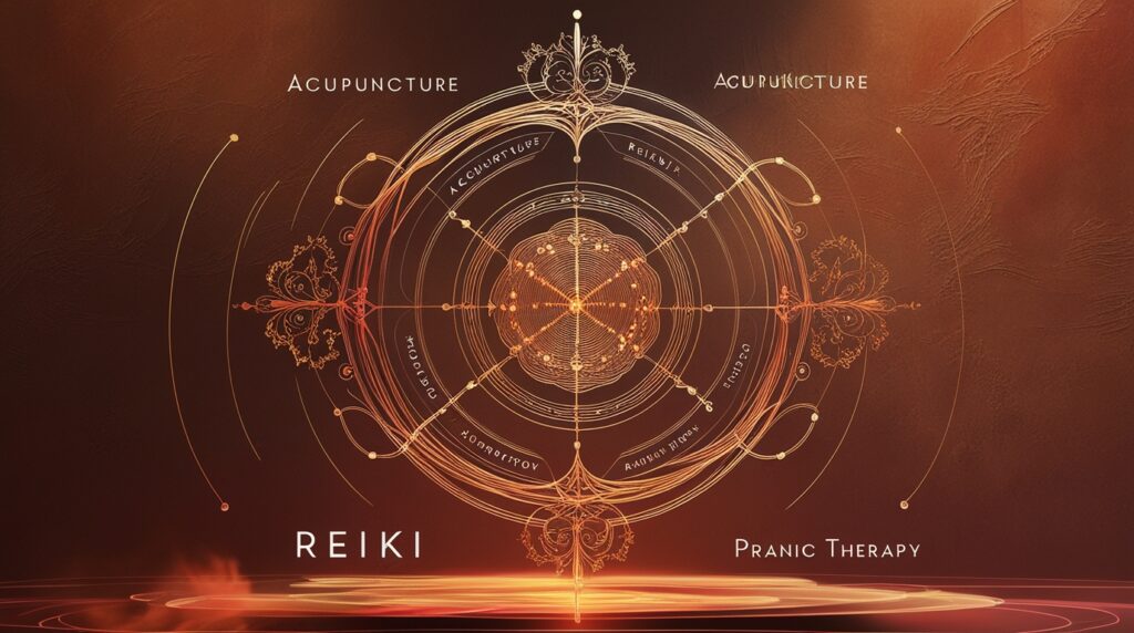 O Reiki é apenas uma das várias práticas energéticas que têm como objetivo restaurar o equilíbrio e a saúde de maneira holística. Comparado a métodos como a acupuntura, a terapia prânica e o toque terapêutico, o Reiki destaca-se pela simplicidade e acessibilidade, já que não requer instrumentos adicionais nem a manipulação física de pontos específicos. No entanto, é interessante observar como essas práticas podem ser complementares entre si, oferecendo benefícios conjuntos e um suporte energético ainda mais profundo.