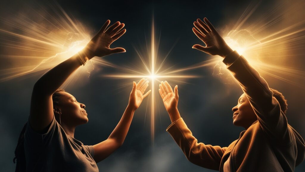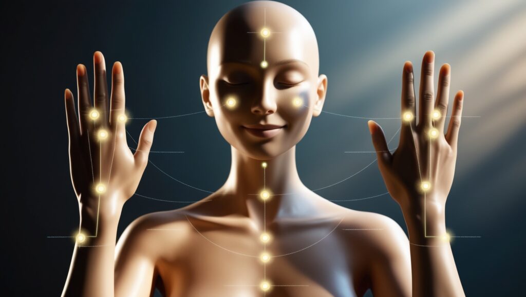 - Peito e coração: Ao colocar as mãos sobre o centro do peito, a energia flui para o coração, promovendo cura emocional e sentimentos de amor e compaixão.