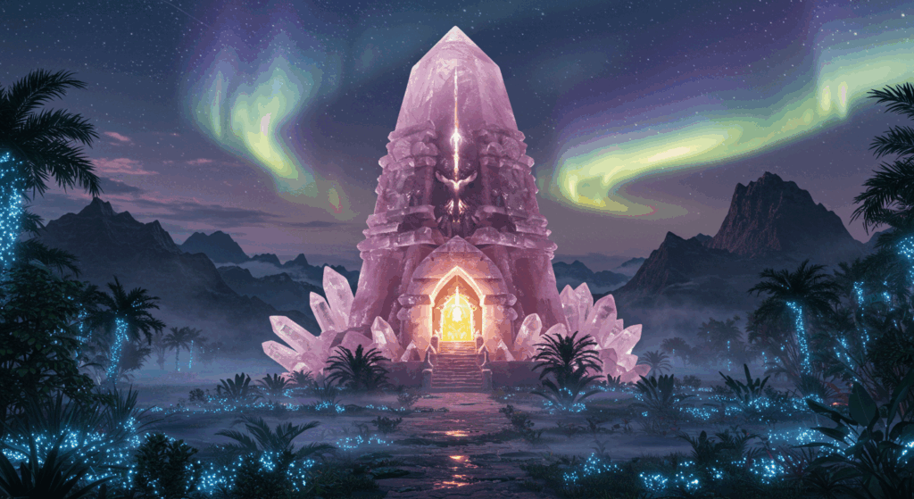 Visualize a Lemurian temple carved in rose quartz, surrounded by soft blue mists. A high priestess offers you a glowing symbol of light — this is your personal Lemurian code.